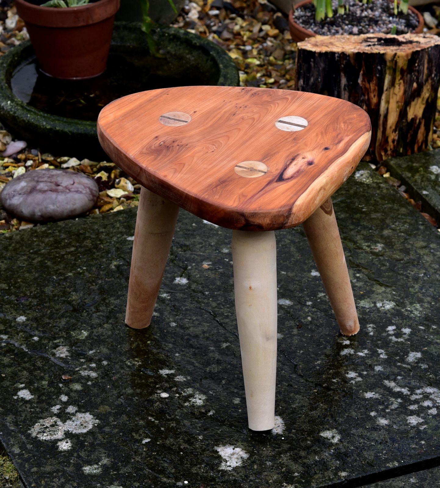 Rustic legs and Yew wood seat